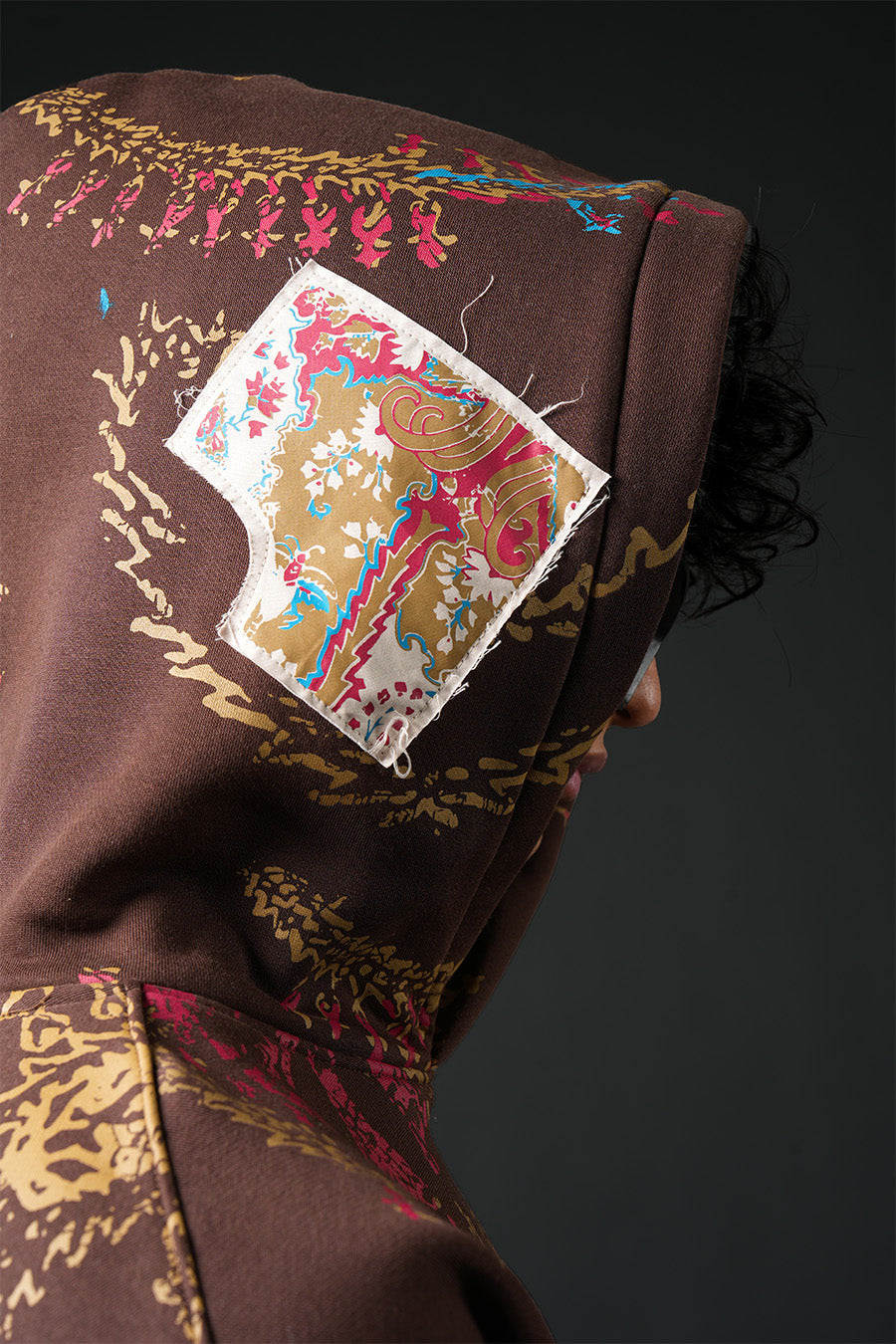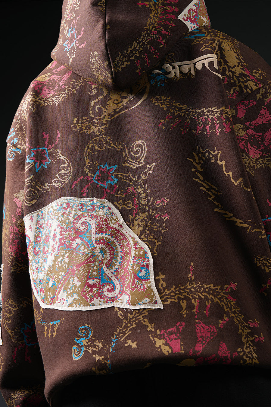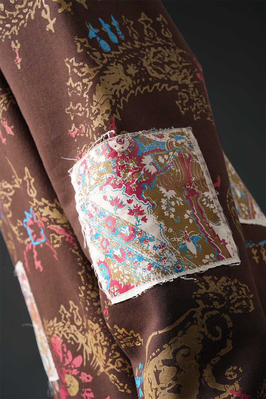 The scattered patches become portals, hinting at moments where the infinite peeks through the ordinary. The flowing motifs beneath them mirror the mind’s constant expansion, stretching beyond time, form, and certainty.