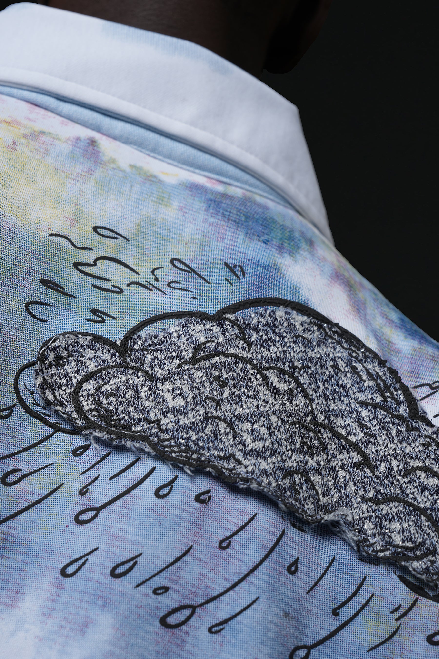 - Embroidered rainclouds on both sleeves for a layered, tactile contrast