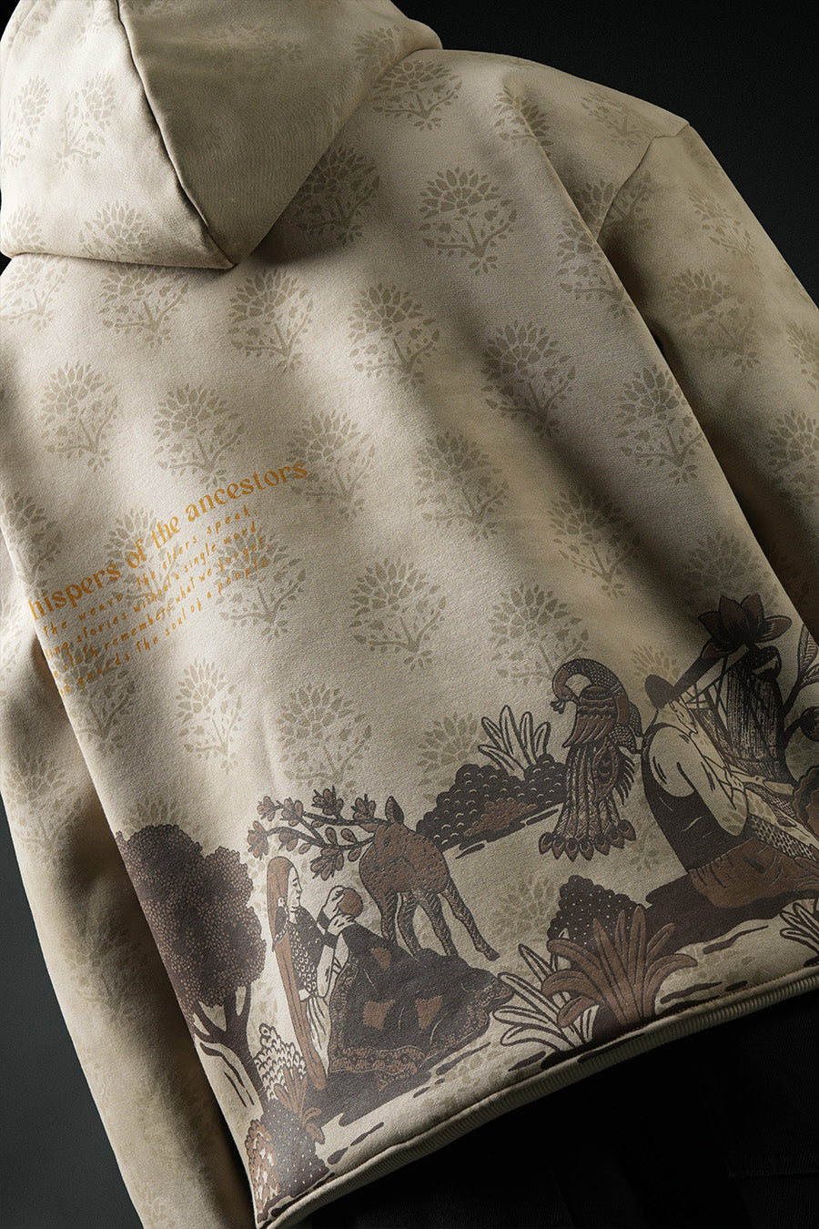 Whispers of the Ancestors” reflects the quiet presence of history in everyday life. The subtle patterns and grounded palette symbolize traditions that continue to guide us, reminding us that the past never truly fades.